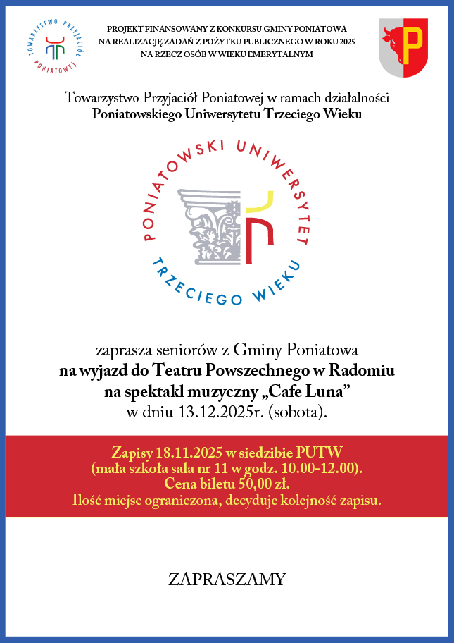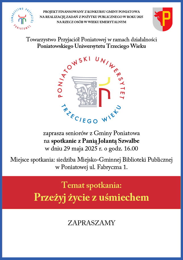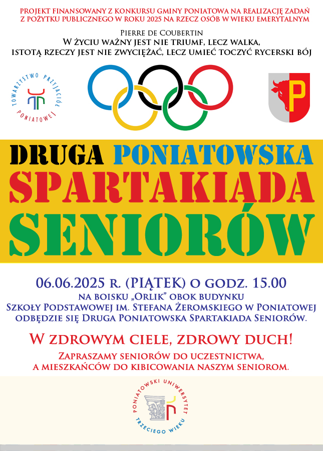 [21.05.2025] Regulamin Drugiej Poniatowskiej Spartakiady Seniorów [20.05.2025] Zaproszenie na Drugą Poniatowską Spartakiadę Seniorów