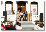 Uroczystość rozpoczęła się od przywitania przybyłych gości przez panią Burmistrz Lillę Stefanek i prezesa TPP Rafała Pastwę. W arkana Regionalizmu wprowadził nas Przewodniczący Wojewódzkiej Rady Towarzystw Regionalnych Prof. dr hab. inż. Sławomir Partycki. Kliknij zdjęcie, aby powiększyć widok. Następnie uroczyście wręczono nagrody w konkursach organizowanych przez CKPiT i TPP w ramach projektu Kultywowanie tradycji i obrzędów w Gminie Poniatowa. Konkurs plastyczny „Tradycje i obrzędy mojego regionu" Udział w konkursie zgłosiły Szkoły Podstawowe z terenu Gminy Poniatowa, łącznie do konkursu przystąpiło 37 uczniów z klas I-VI. Jury w składzie: Teresa Kramek, Monika Szymczyk, Rafał Pastwa Biorąc pod uwagę następujące kryteria oceny: inwencja twórcza i pomysłowość w zakresie przedstawienia tematu, ogólna estetyka i jakość wykonania pracy, oryginalność oraz stopień trudności wykonania wyłoniło trzy prace zwycięskie. Nagrodzone prace wykonali: 1. Aleksandra Muszyńska, kl. 3 ze Szkoły Podstawowej im. Jana Kochanowskiego w Poniatowej Kolonii, op. Elżbieta Taciak 2. Bartosz Bednarz, kl. 3 ze Szkoły Podstawowej im. Henryka Sienkiewicza w Kowali, op. Anna Kosno 3. Gabriela Kozińska, kl. 4 ze Szkoły Podstawowej im. Stefana Żeromskiego w Poniatowej, op. Anna Woźniak. XI Konkurs wiedzy o Regionalizmie Do II etapu konkursu w dniu 13.06.2012 r. przystąpiło 12 uczniów ze Szkół Podstawowych Gminy Poniatowa. Jury w składzie: Maria Wanda Kryk, Teresa Kramek, Izabela Jeziorska Wyłoniono trzech zwycięzców: 1. Aneta Mastalerz, Szkoła Podstawowa im. Marii Konopnickiej w Kraczewicach, op. Jolanta Radomska - 19,5 pkt 2. Mateusz Pisula, Szkoła Podstawowa im. Jana Kochanowskiego w Poniatowej Kolonii, op. Bożena Chyła - 18,5 pkt 3. Adrianna Cięszczyk, Szkoła Podstawowa im. Marii Konopnickiej w Kraczewicach, op. Jolanta Radomska - 17,5 pkt Obchody podwójnego Jubileuszu stanowiły znakomitą okazję do wyróżnienia zasłużonych mieszkańców Poniatowej, którzy przez dziesiątki lat brali udział w tworzeniu historii naszej małej ojczyzny. Odznaczenia otrzymali byli i obecni członkowie Zarządu TPP. W imieniu Prezydenta pana Bronisława Komorowskiego odznaczenia wręczyła pani Burmistrz Lilla Stefanek. Prezydent Rzeczypospolitej Polskiej Pan Bronisław Komorowski nadał odznaczenia państwowe: ZŁOTYM KRZYŻEM ZASŁUGI za zasługi w działalności na rzecz społeczności lokalnej odznaczeni zostali: 1. Pani Maria Wanda Kryk 2. Pan Wiesław Ptak