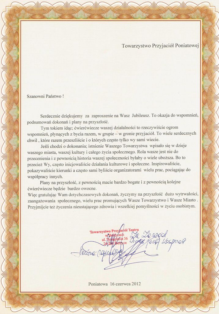 50-lecie nadania praw miejskich Poniatowej i 25-lecie Towarzystwa Przyjaciół Poniatowej 16 czerwca 2012